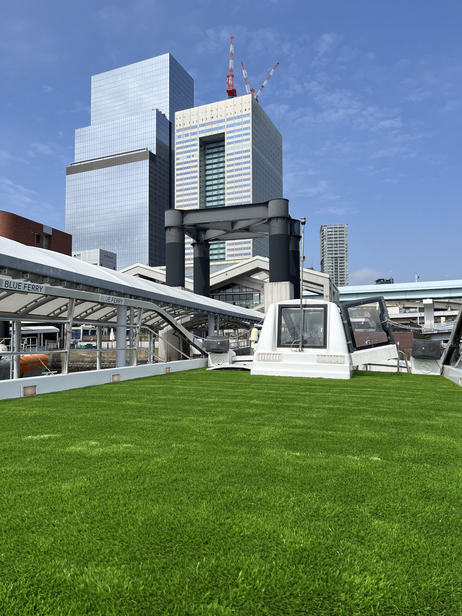 こちらの船で、弊社が2019年に施工したHi-NODE(日の出ふ頭)の芝生広場へ行くこともできます。