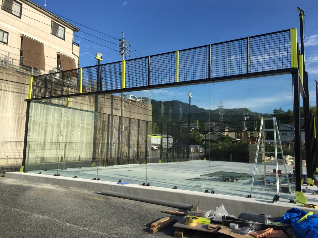 広島本社パデルコート施工【ガラス】 2021年9月8日 最終更新日時 : 2022年12月7日 rise 骨組みが完了したら、いよいよ強化ガラスをはめ込んでいきます! まずはコート手前から1枚設置完了両隣のガラスを着々と設置していきました まだ拭き上げはしていないにも関わらず、透明感がすごいとスタッフ間でも話題になりましたガラス同士や柱との接続部分を固定し、ガラスの施工は完了です! 残すはパデル用人工芝の施工のみです! 各施工項目の様子は下のボタンからご覧いただけます パデルシステム紹介ページはこちら パデルについて(KNOW MORE) パデルコートについて(KNOW MORE)