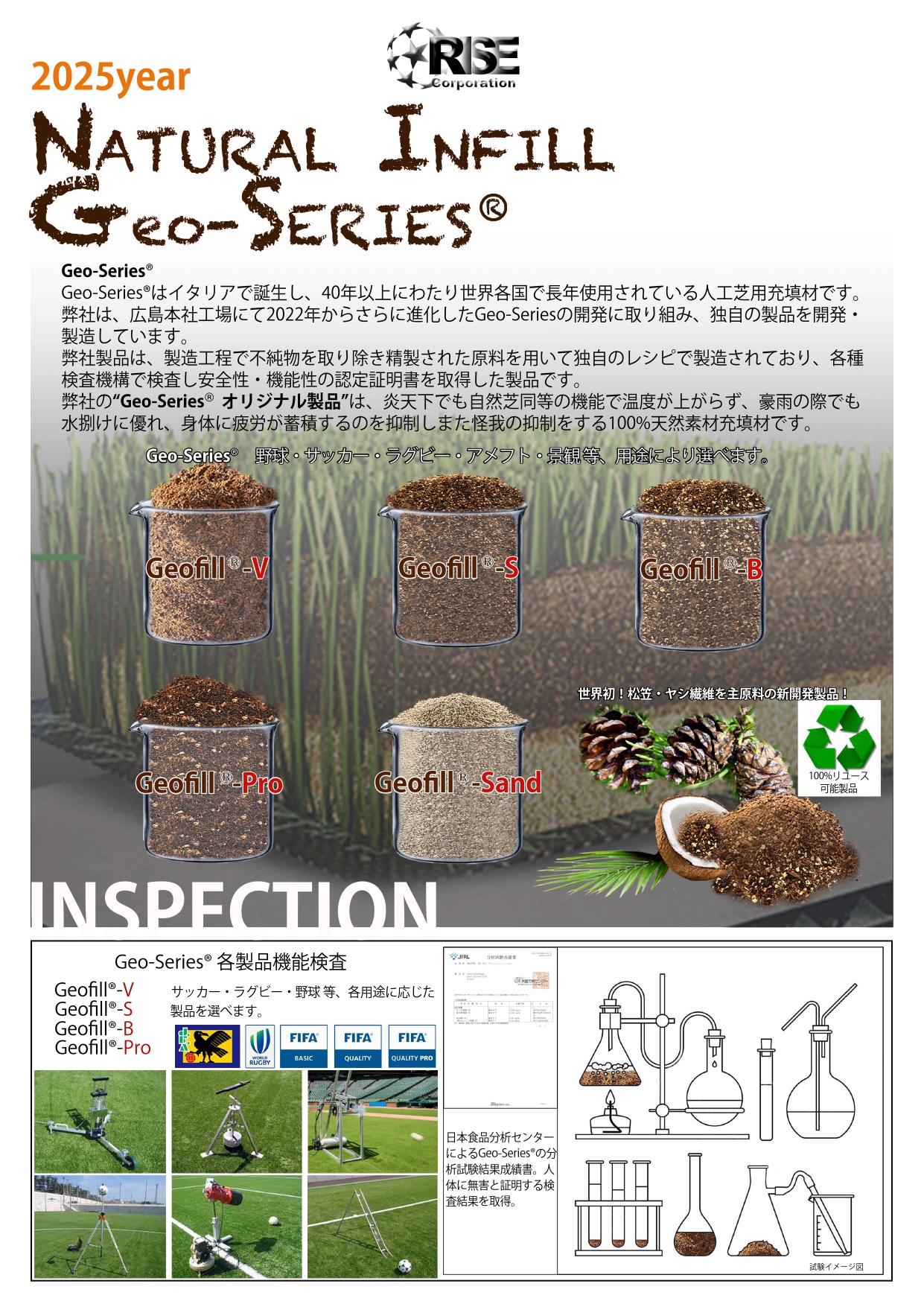なお、Geofillは日本食品センターで人体に害のない証明を受けただけでなく、FIFA・日本JFA・WORLD RUGBYといった各協会からも認定を受けています。